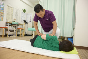 さいたま市北区 あん整骨院の施術は、安院長による手技を中心とした施術です。ボキボキと骨を鳴らすような強い刺激ではなく、気合を入れながら丁寧に仙腸関節を調整していきます。