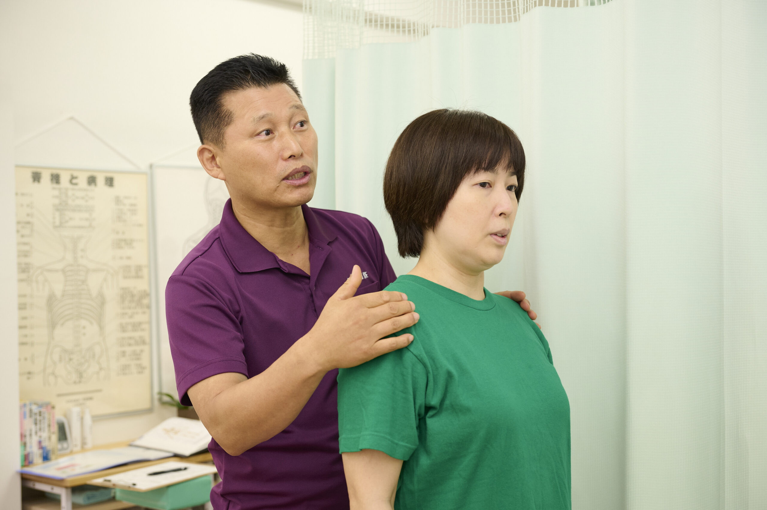 患者様の生活習慣、症状の発症経緯、現在の痛みの状況などを丁寧にお聞きし、全身の歪みパターンを分析します。